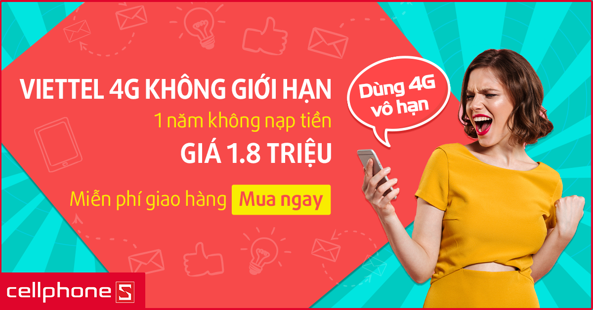 Khuyến mãi sử dụng 4G tốc độ cao trong 12 tháng, không phát sinh thêm bất kỳ phí dịch vụ 4G nào trong trong 12 tháng này.